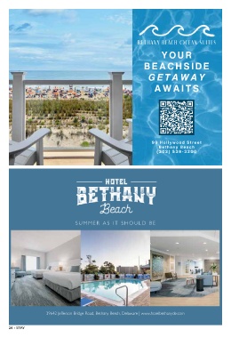 YOUR BEACHSIDE GETAWAY AWAITS 99 Holl yw ood S tr ee t Be t han y Beah ( 302 ) 539 - 3200 SUMMER AS IT SHOULD BE 39642 Jefferson Bridge Road, Bethany Beach, Delaware | www.hotelbethanyde.com 26 • STAY
