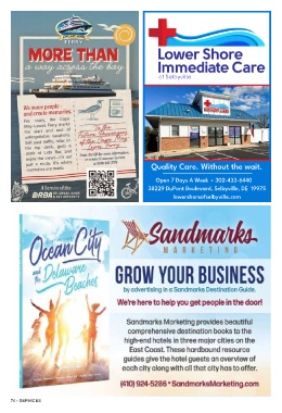 Quality Care. Without the wait. Open 7 Days A Week 302-433-6440 38229 DuPont Boulevard, Selbyville, DE 19975 lowershoreofselbyville.com 74 • SERVICES